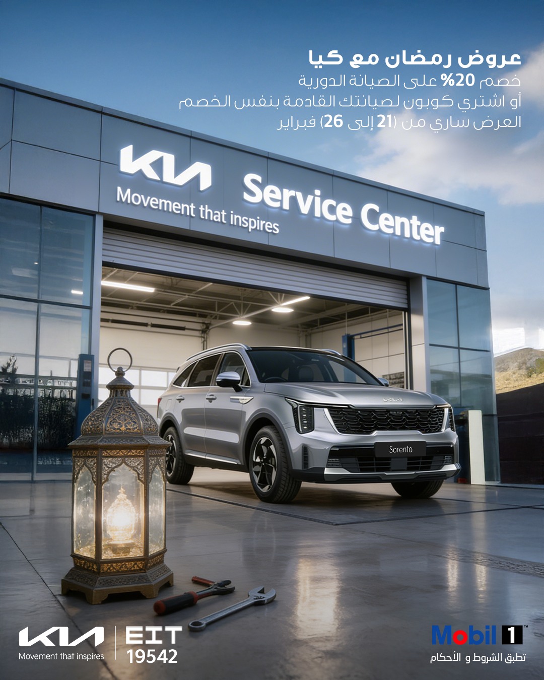 بالإضافة إلى عرض عند شراء كيا سورينتو أو كيا كارنفال يشمل 3 سنوات أو 60,000 كم صيانة مجانية، و 3 سنوات ترخيص مجاني خلال شهر رمضان فقط